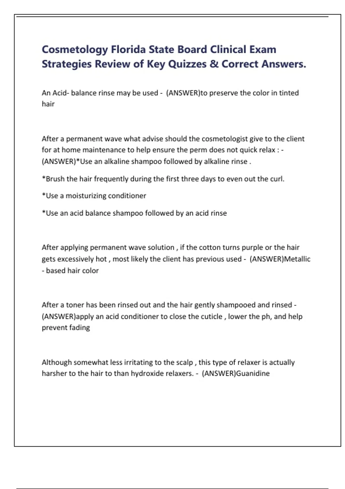 (ANSWER)*Use an alkaline shampoo followed by alkaline rinse .