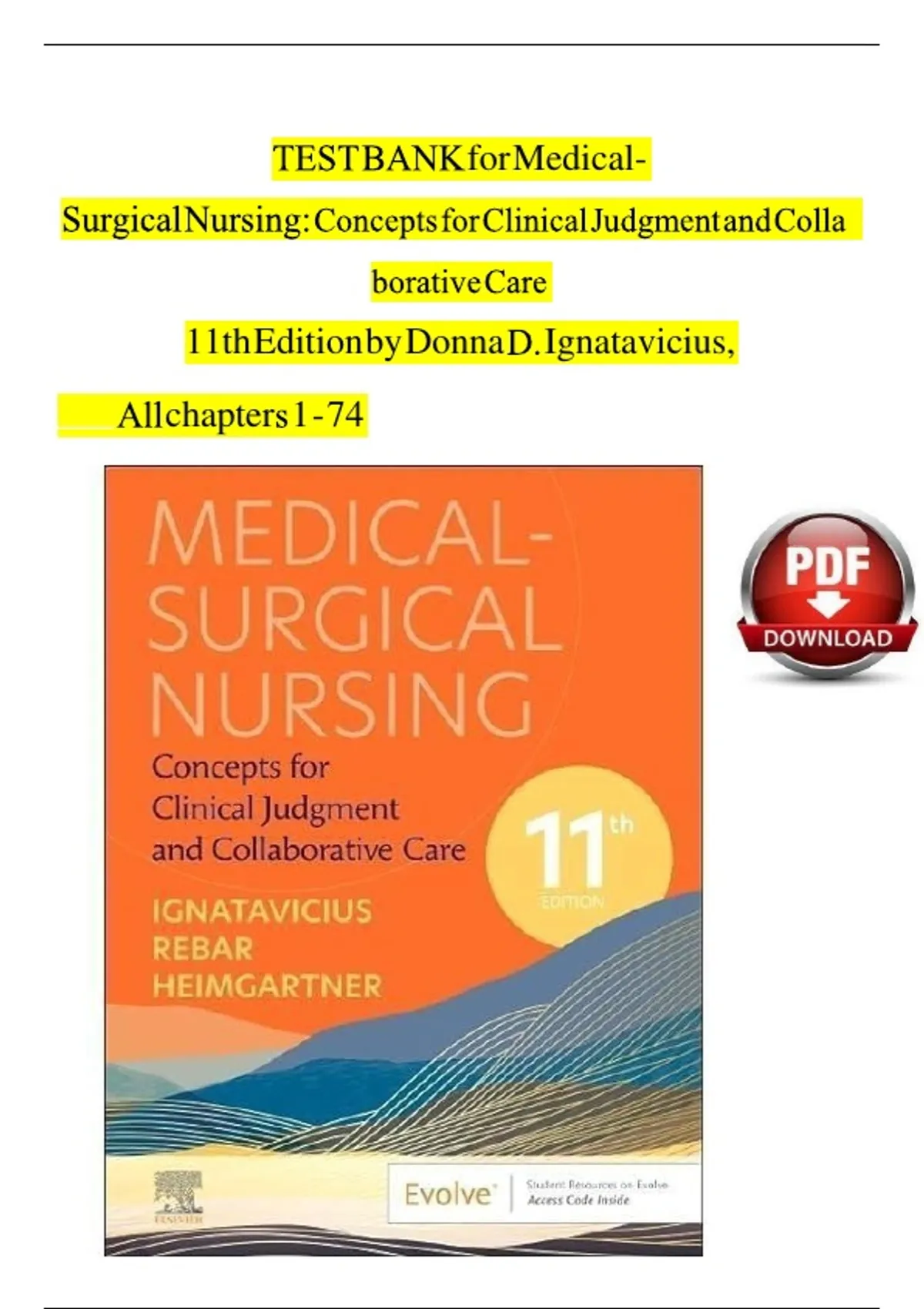 TEST BANK FOR Medical-Surgical Nursing: Concepts for Clinical Judgment and Collaborative Care 11th edition by Donna D. Ignatavicius ISBN: 978-0323878265 COMPLETE GUIDE WITH RATIONALES 100% VERIFIED A+ GRADE ASSURED!!!!NEW LATEST UPDATE!!!!!! TEST BANK FOR Medical-Surgical Nursing: Concepts for Clinical Judgment and Collaborative Care 11th edition by Donna D. Ignatavicius ISBN: 978-0323878265 COMPLETE GUIDE WITH RATIONALES 100% VERIFIED A+ GRADE ASSURED!!!!NEW LATEST UPDATE!!!!!!