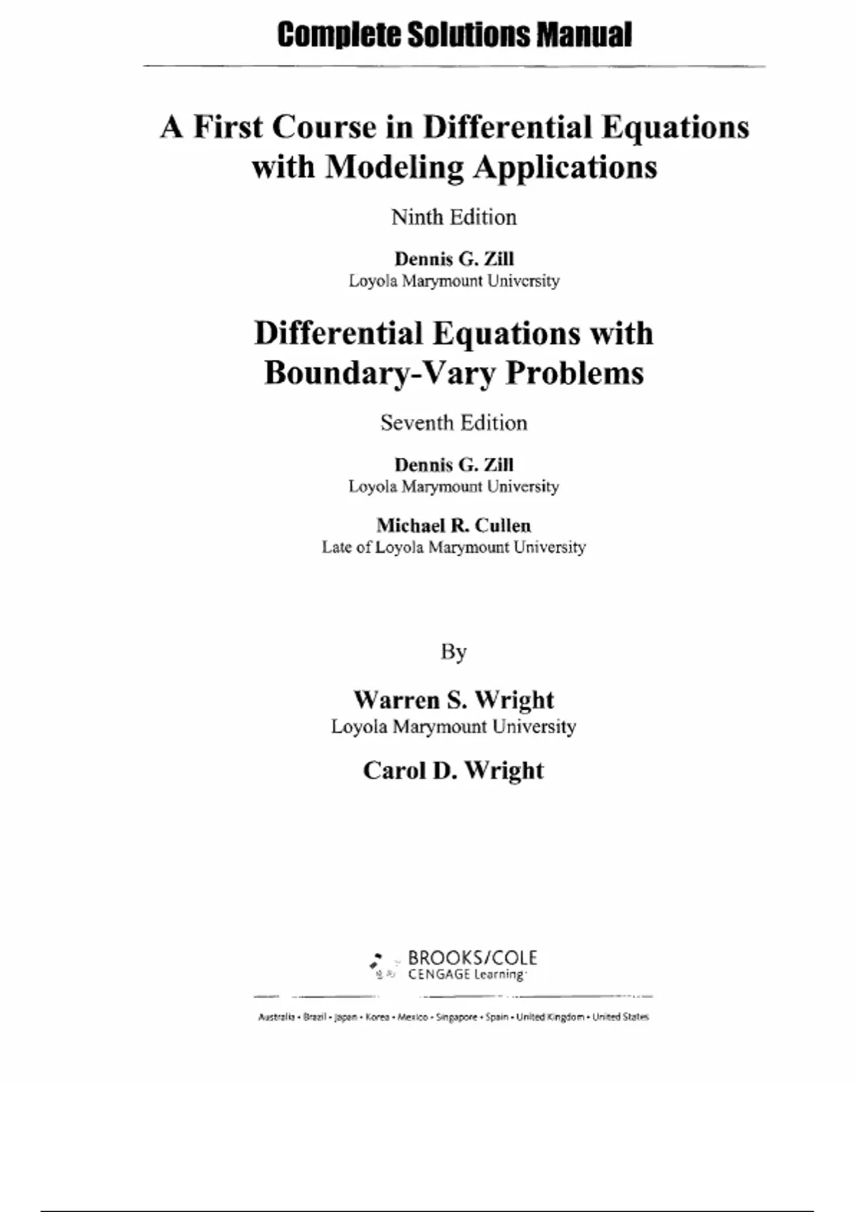 Solutions Manual for Differential Equations with Boundary-Value Problems 9th Edition, by Dennis Zill, Chapter 1-15 |All Chapters
