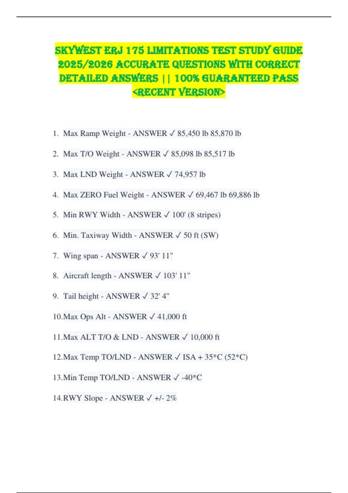 1. Max Ramp Weight - ANSWER ✓ 85,450 lb 85,870 lb
