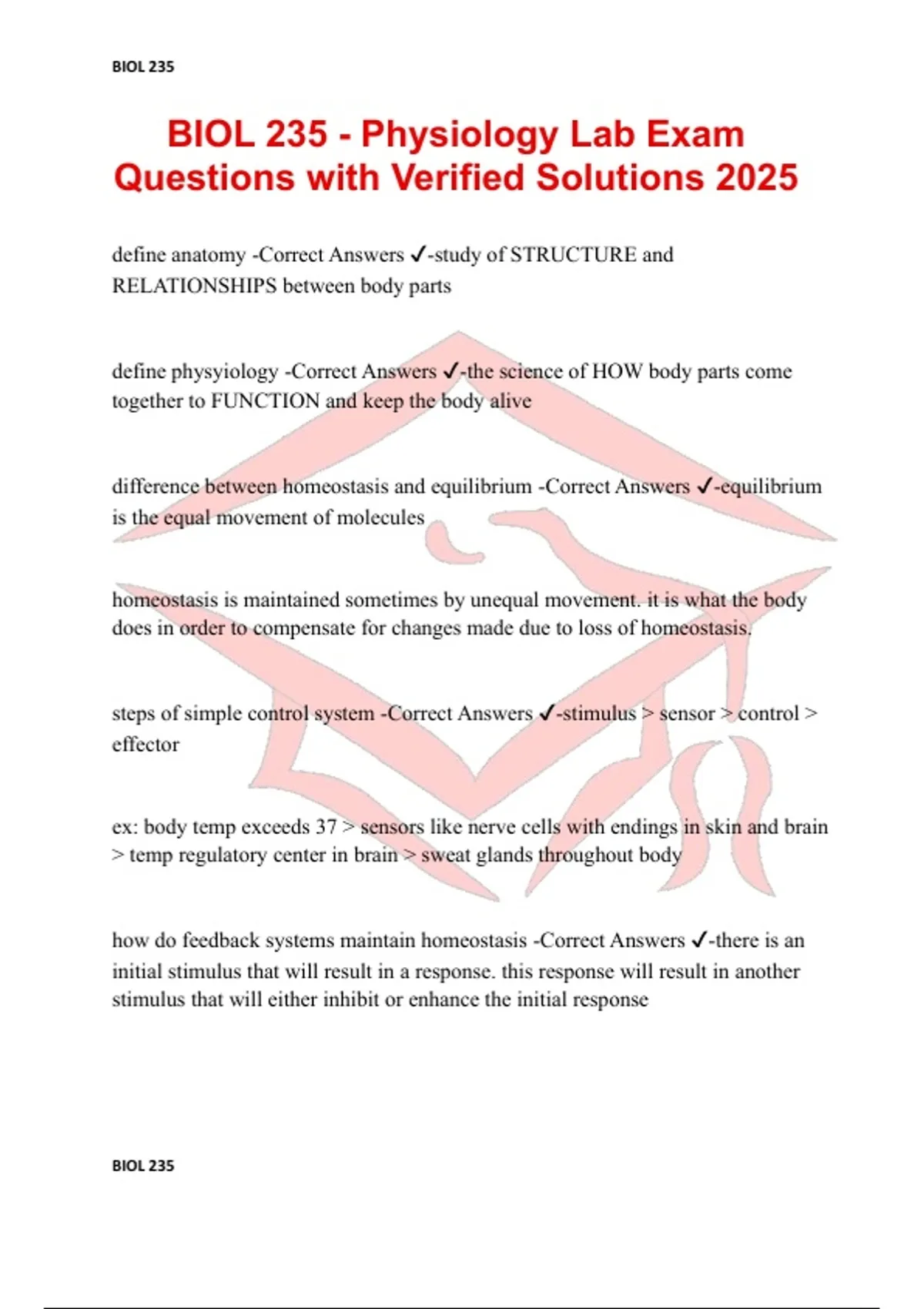 BIOL 235 - Physiology Lab Exam Questions with Verified Solutions 2025