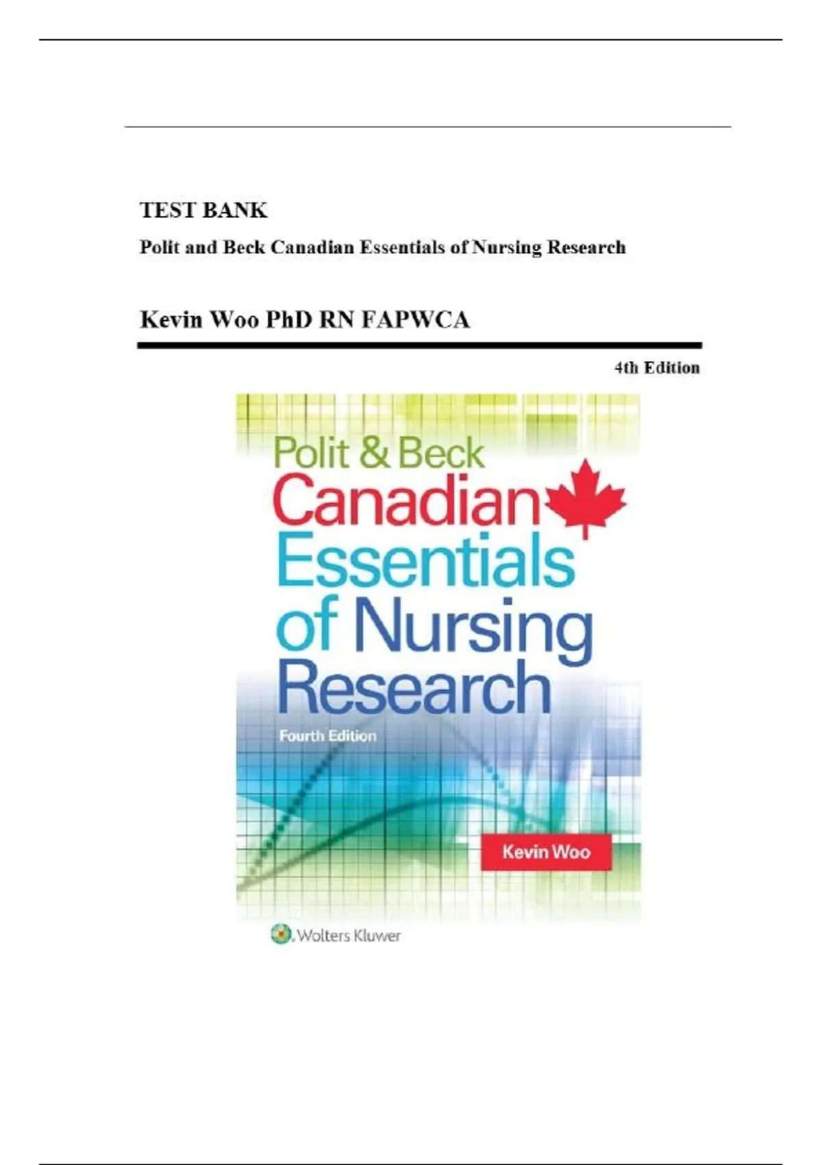 , Polit & Beck Canadian Essentials of Nursing Research 4th Edition Woo TestBank