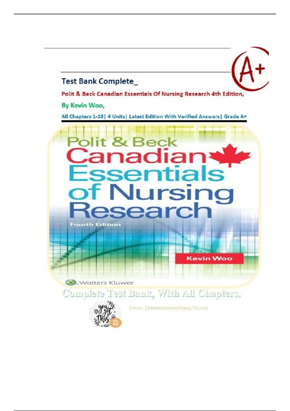 , Polit & Beck Canadian Essentials of Nursing Research 4th Edition Woo TestBa