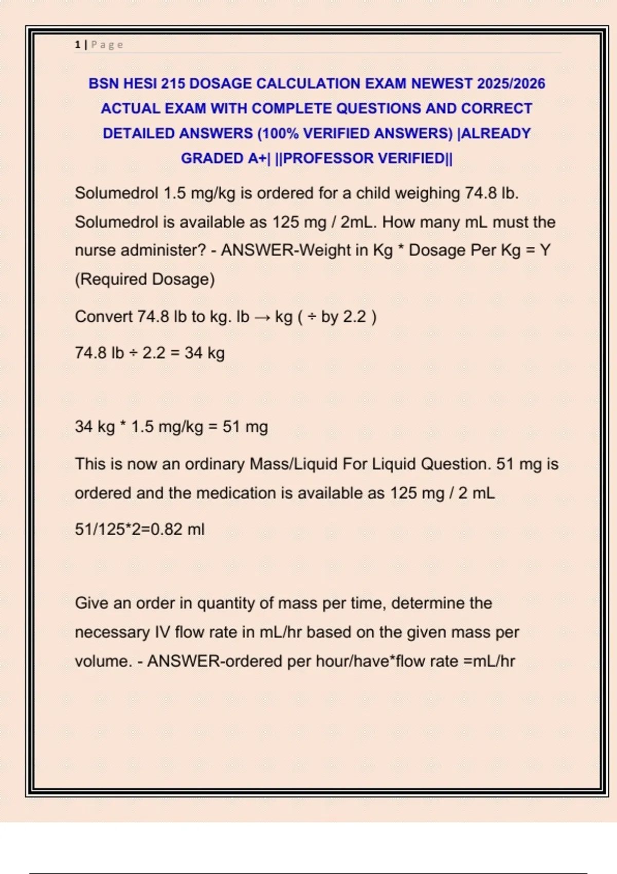 BSN HESI 215 DOSAGE CALCULATION EXAM NEWEST 2025/2026