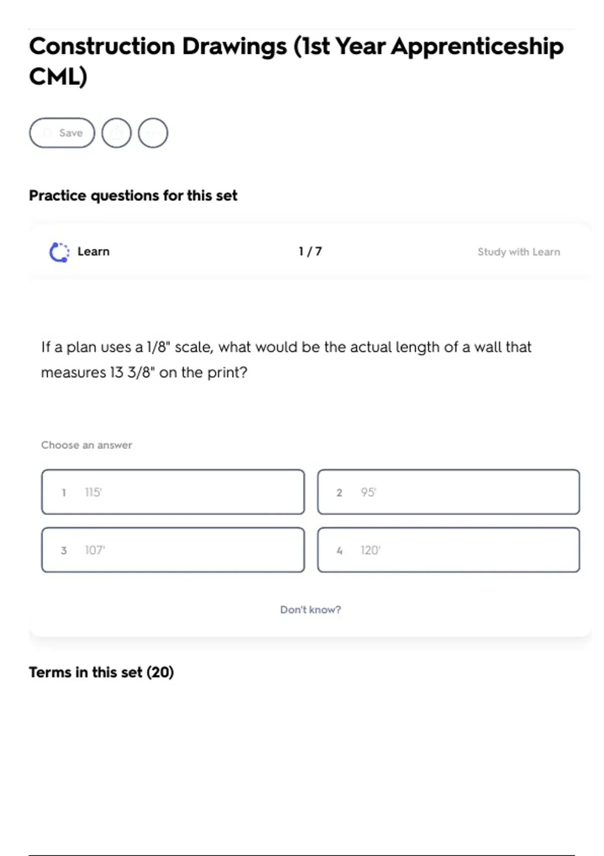If a plan uses a 1/8" scale, what would be the actual length of a wall that