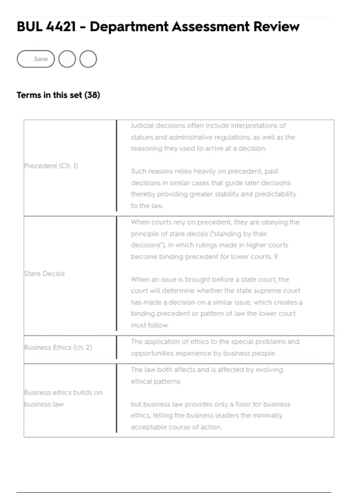 BUL 4421 - Department Assessment Review: Questions With Objective Solutions