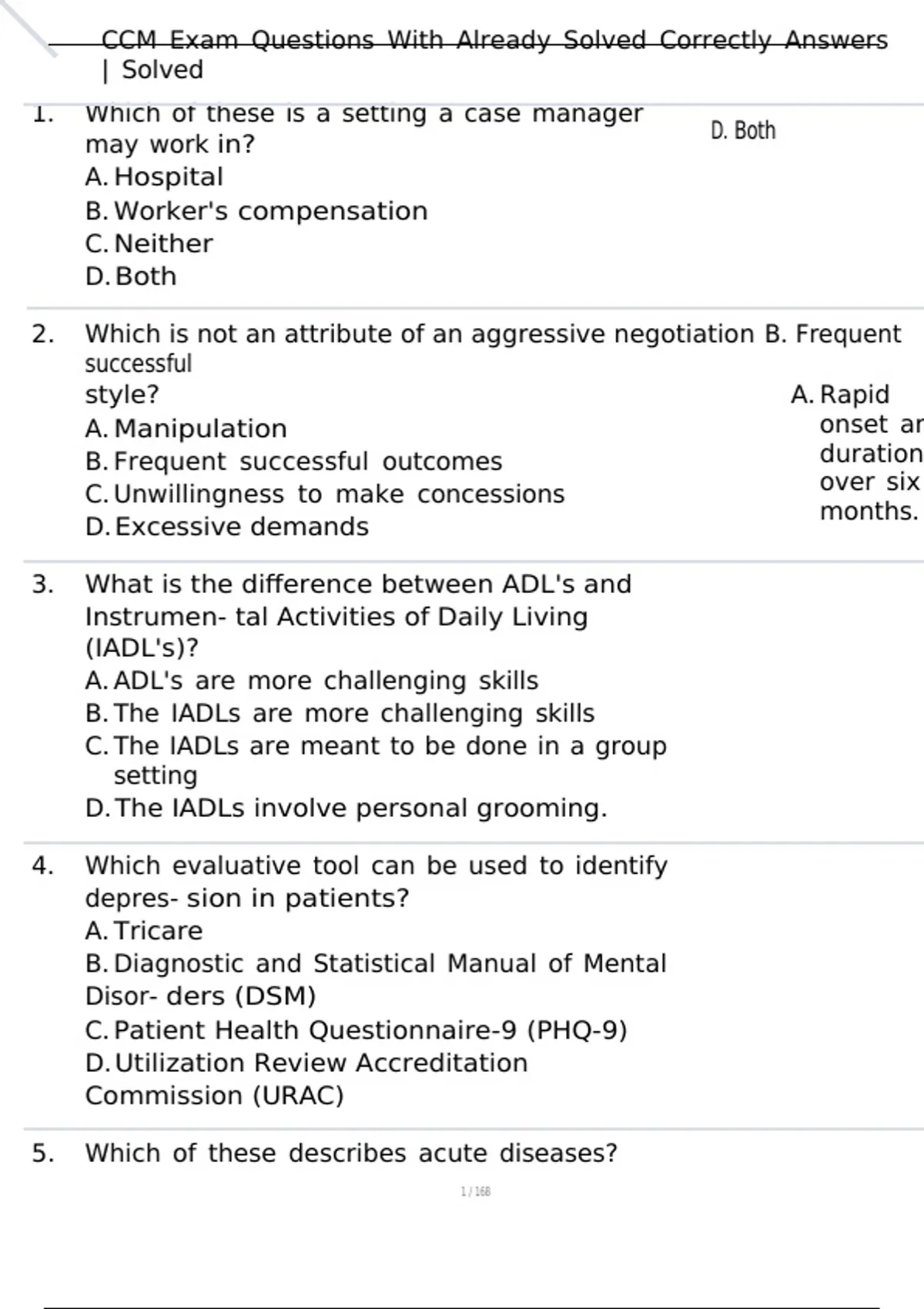 , CCM Exam Questions With Already Solved Correctly Answers