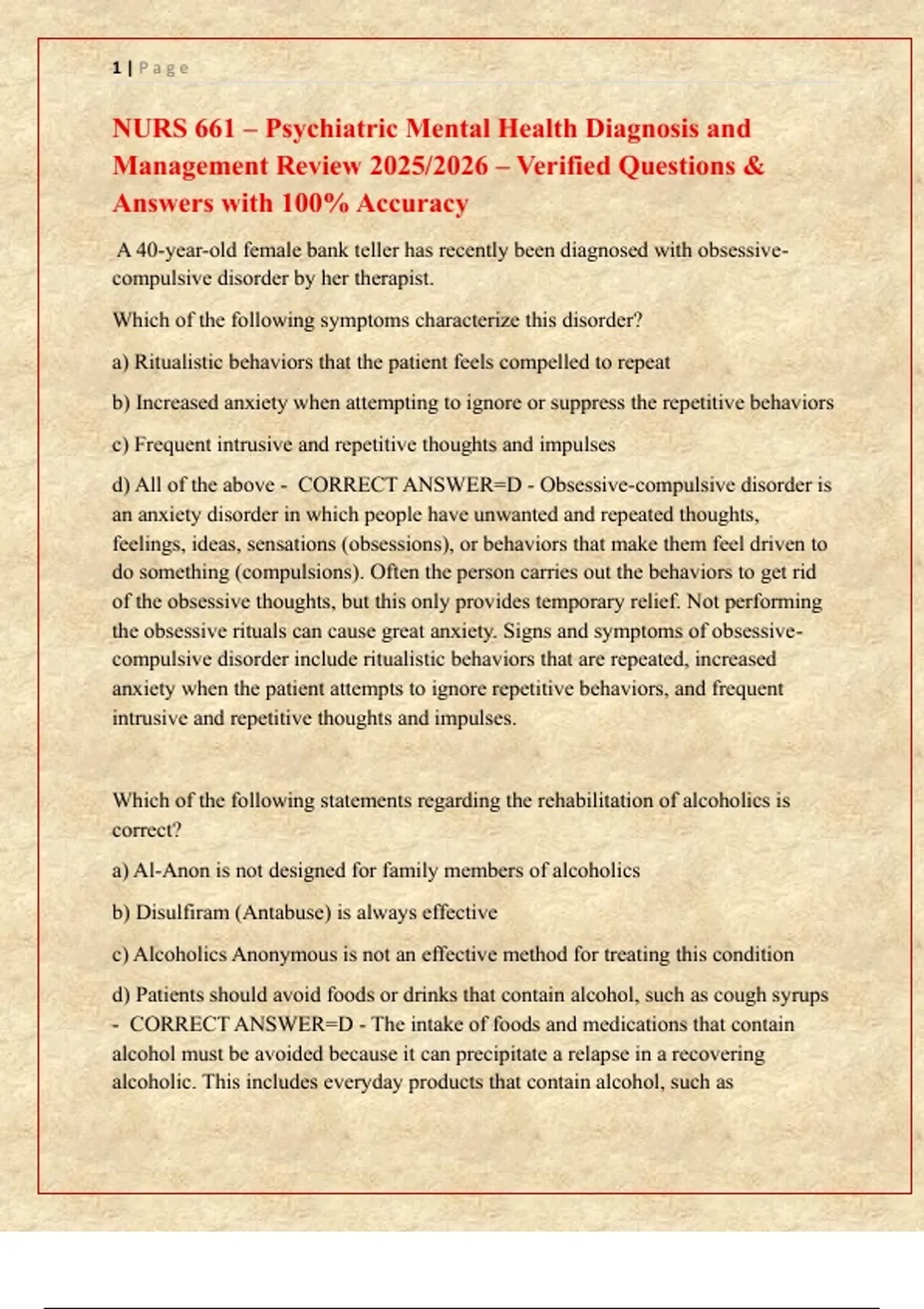 d) All of the above - CORRECT ANSWER=D - Obsessive-compulsive disorder is