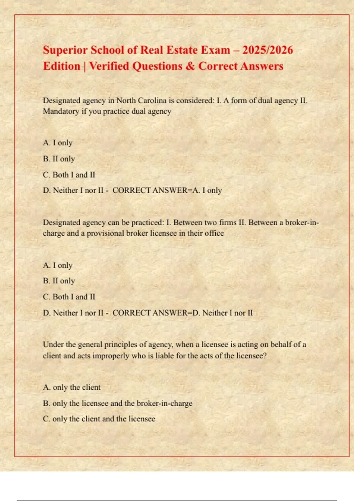 Designated agency in North Carolina is considered: I. A form of dual agency II.