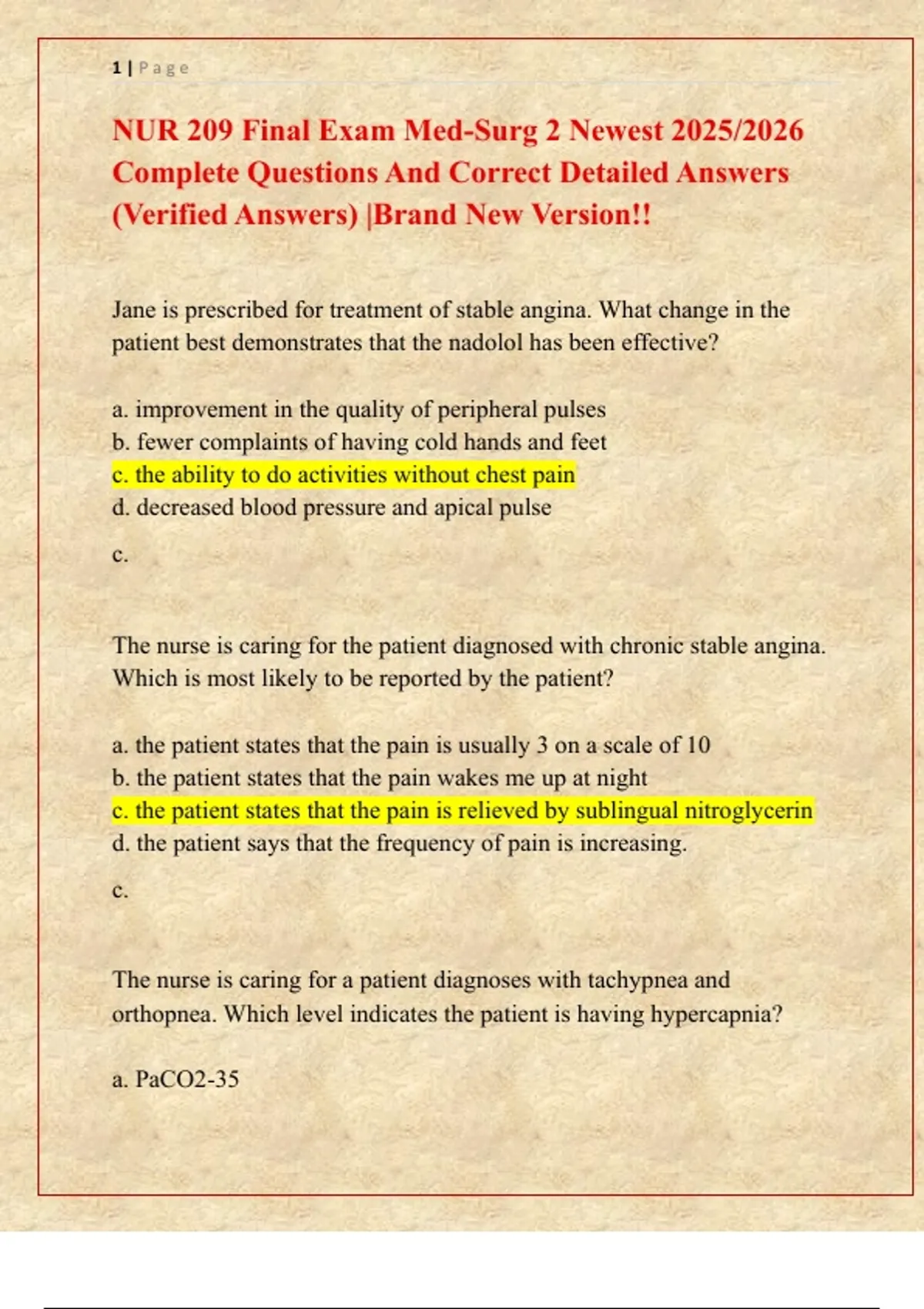 NUR 209 Final Exam Med-Surg 2 Newest 2025/2026