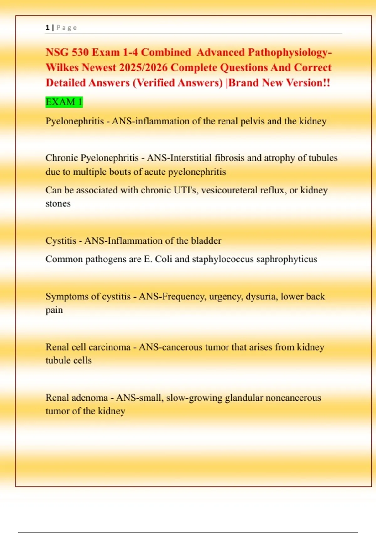 NSG 530 Exam 1-4 Combined Advanced Pathophysiology-