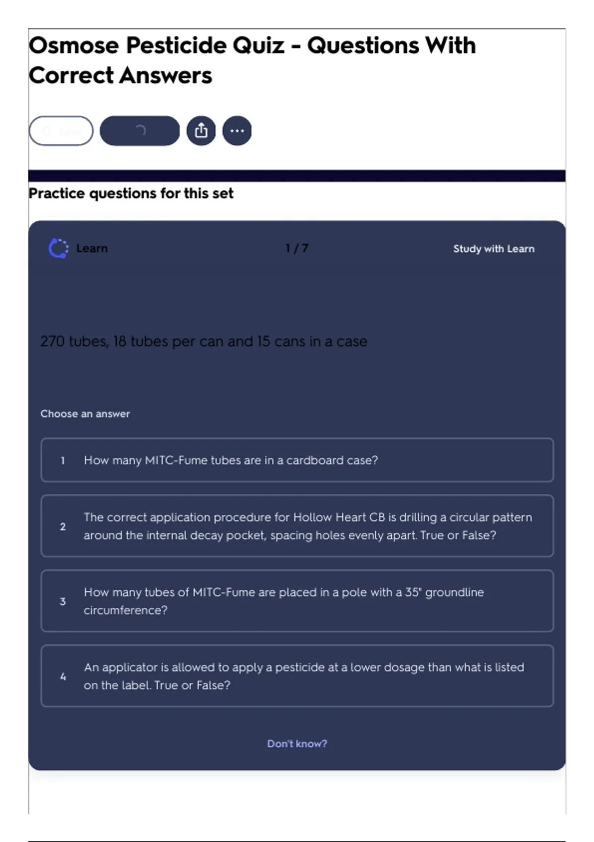 Osmose Pesticide Quiz - Questions With
