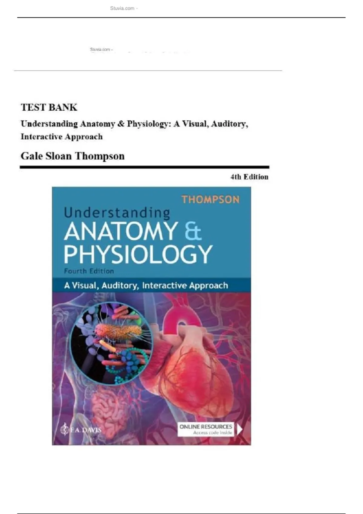 Test Bank For Understanding Anatomy & Physiology (4TH ED) By Gale Sloan Thompson| ALL CHPATERS 1-25, LATEST