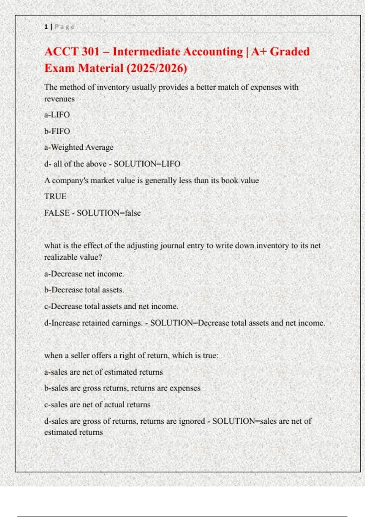 ACCT 301 – Intermediate Accounting | A+ Graded
