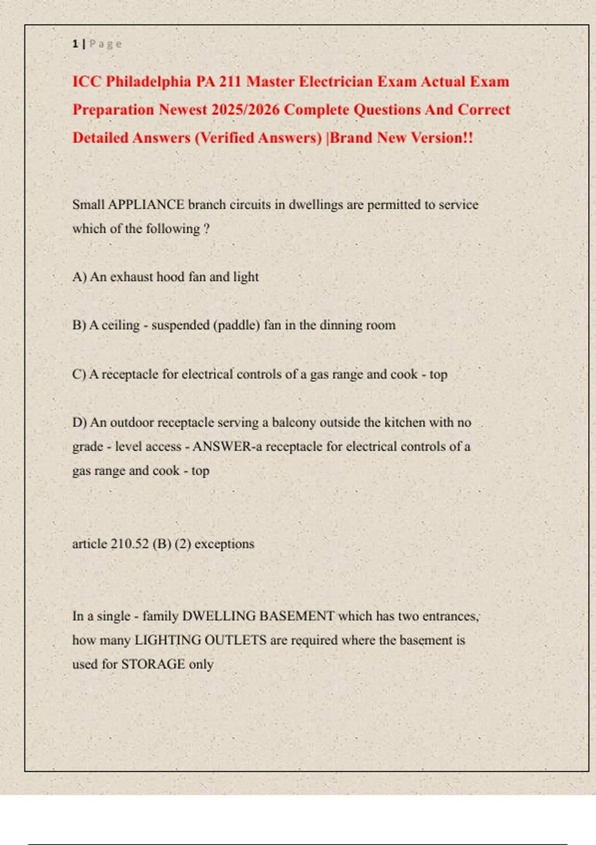 ICC Philadelphia PA 211 Master Electrician Exam Actual Exam Preparation Newest 2025/2026 Complete Questions And Correct Detailed Answers (Verified Answers) |Brand New Version!!