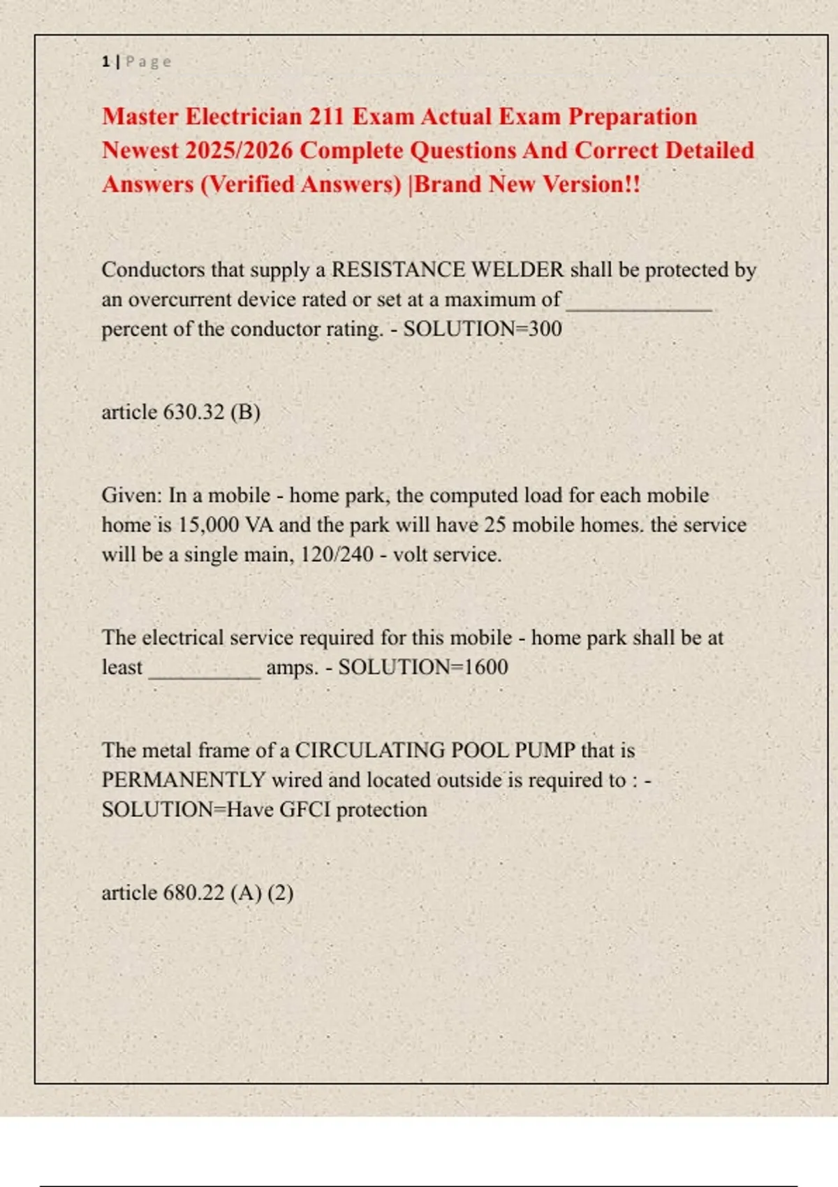 Master Electrician 211 Exam Actual Exam Preparation Newest 2025/2026 Complete Questions And Correct Detailed Answers (Verified Answers) |Brand New Version!!