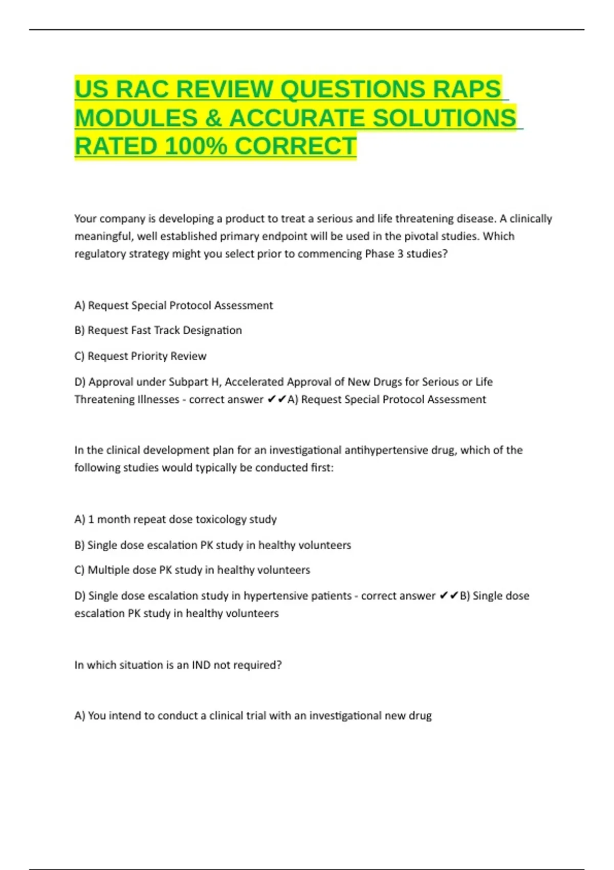 US RAC REVIEW QUESTIONS RAPS MODULES & ACCURATE SOLUTIONS RATED 100% CORRECT refers to study sets on Quizlet that help candidates prepare for the Regulatory Affairs Certification (RAC) exam, which is a professional credential offered by the Regulatory Affairs Professionals Society (RAPS)