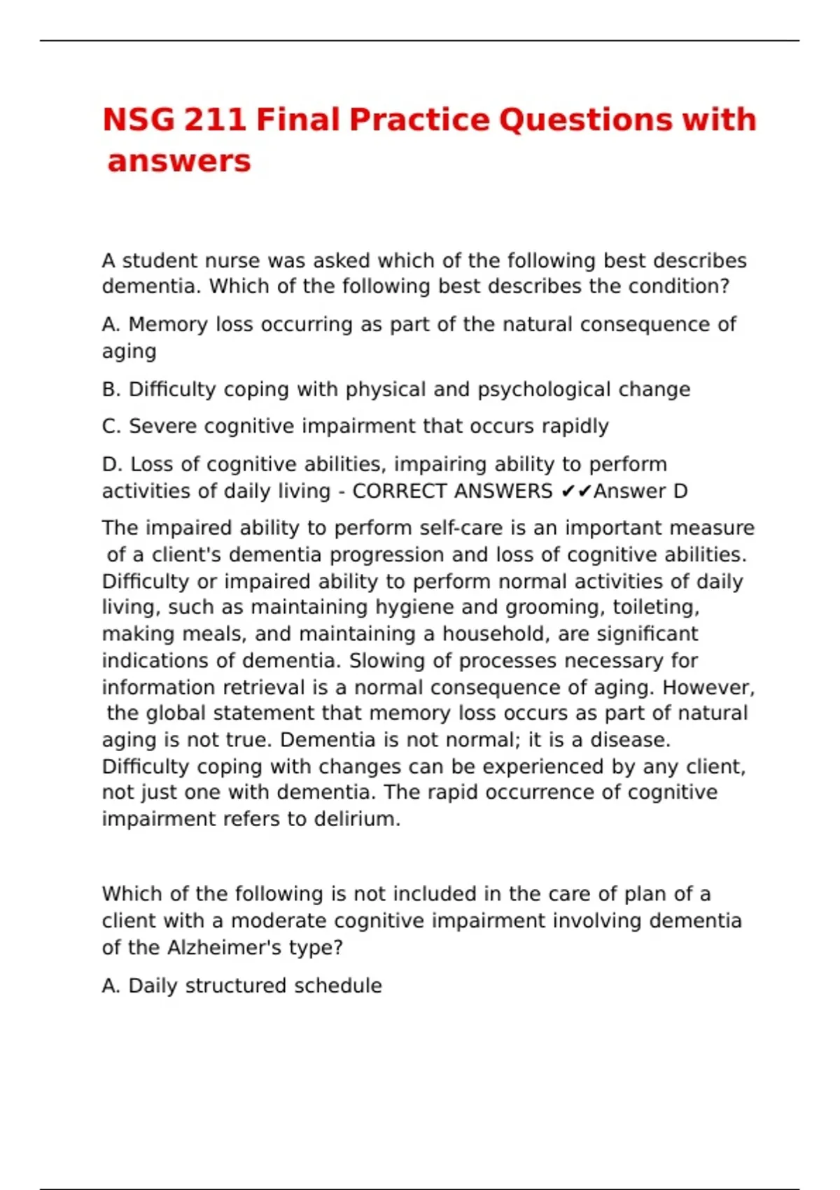 daily living. - CORRECT ANSWERS ✔✔Answer D