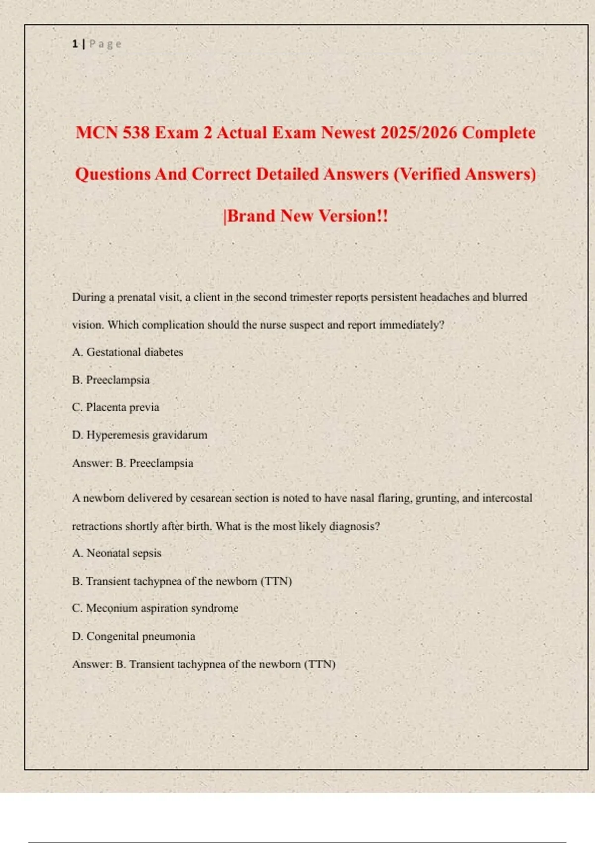 MCN 538 Exam 2 Actual Exam Newest 2025/2026 Complete