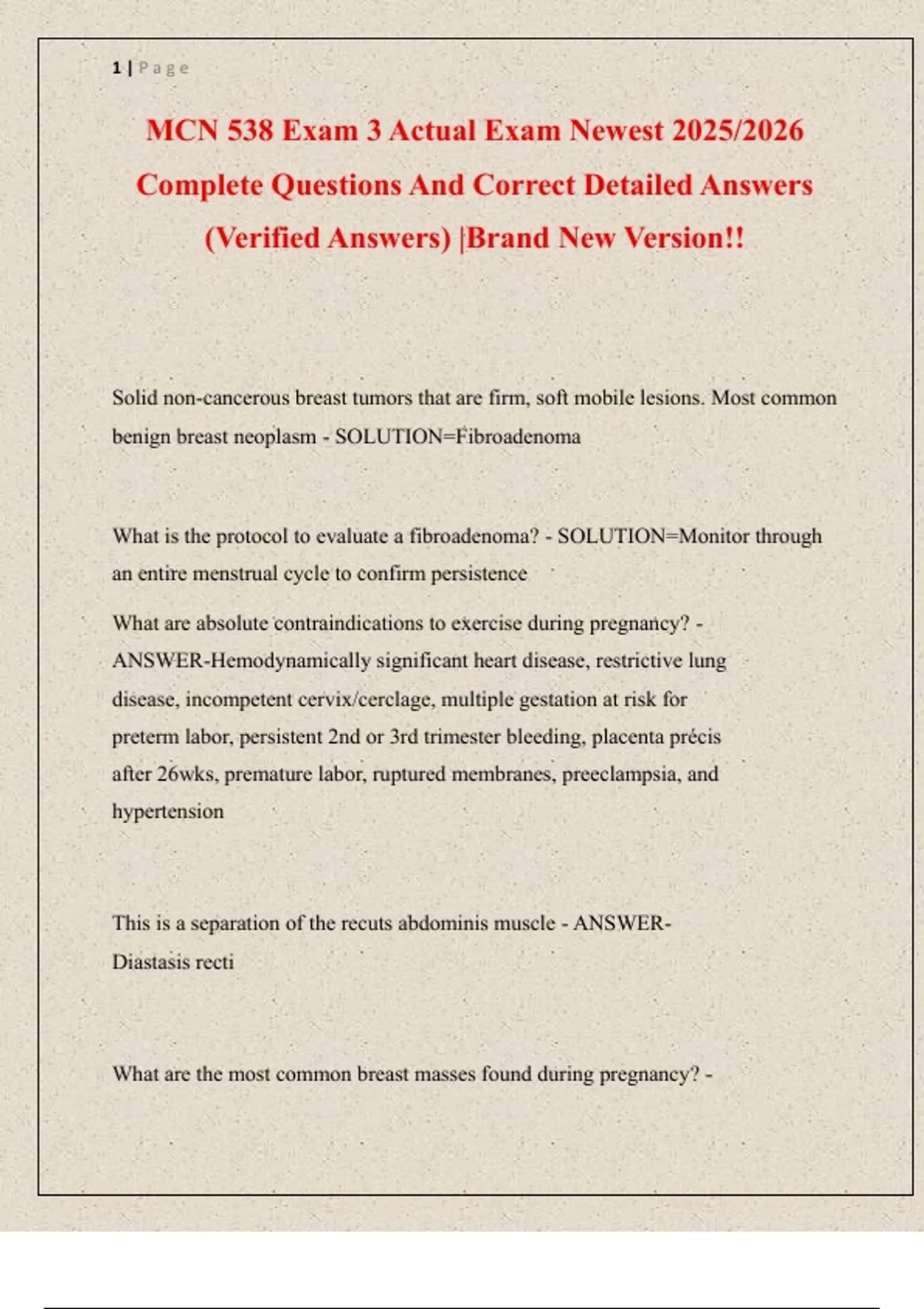 MCN 538 Exam 3 Actual Exam Newest 2025/2026 Complete Questions And Correct Detailed Answers (Verified Answers) |Brand New Version!!