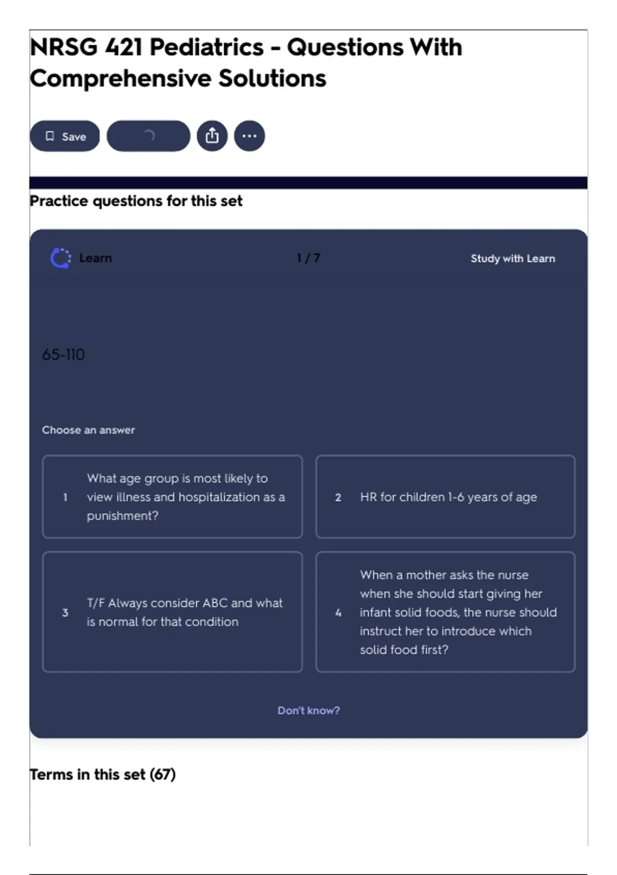 NRSG 421 Pediatrics - Questions With