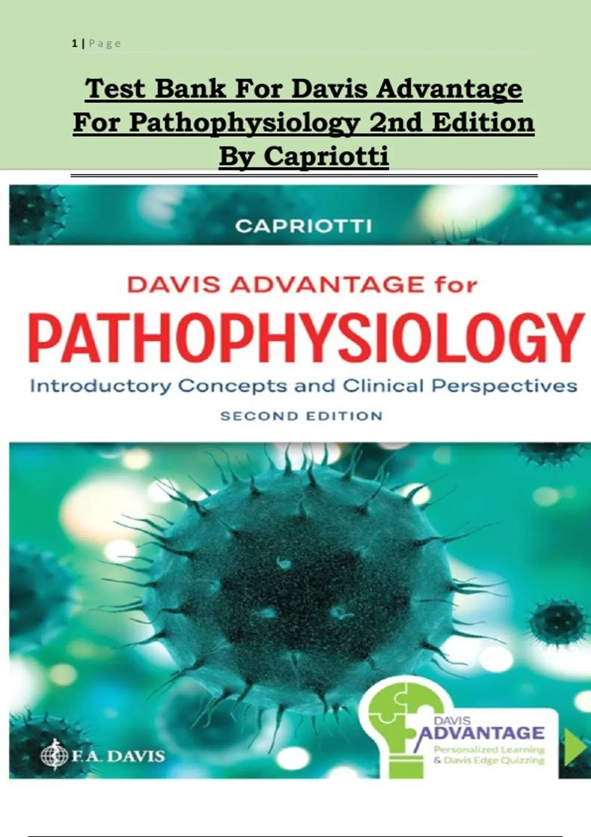 Test Bank For Davis Advantage For Pathophysiology 2nd Edition By