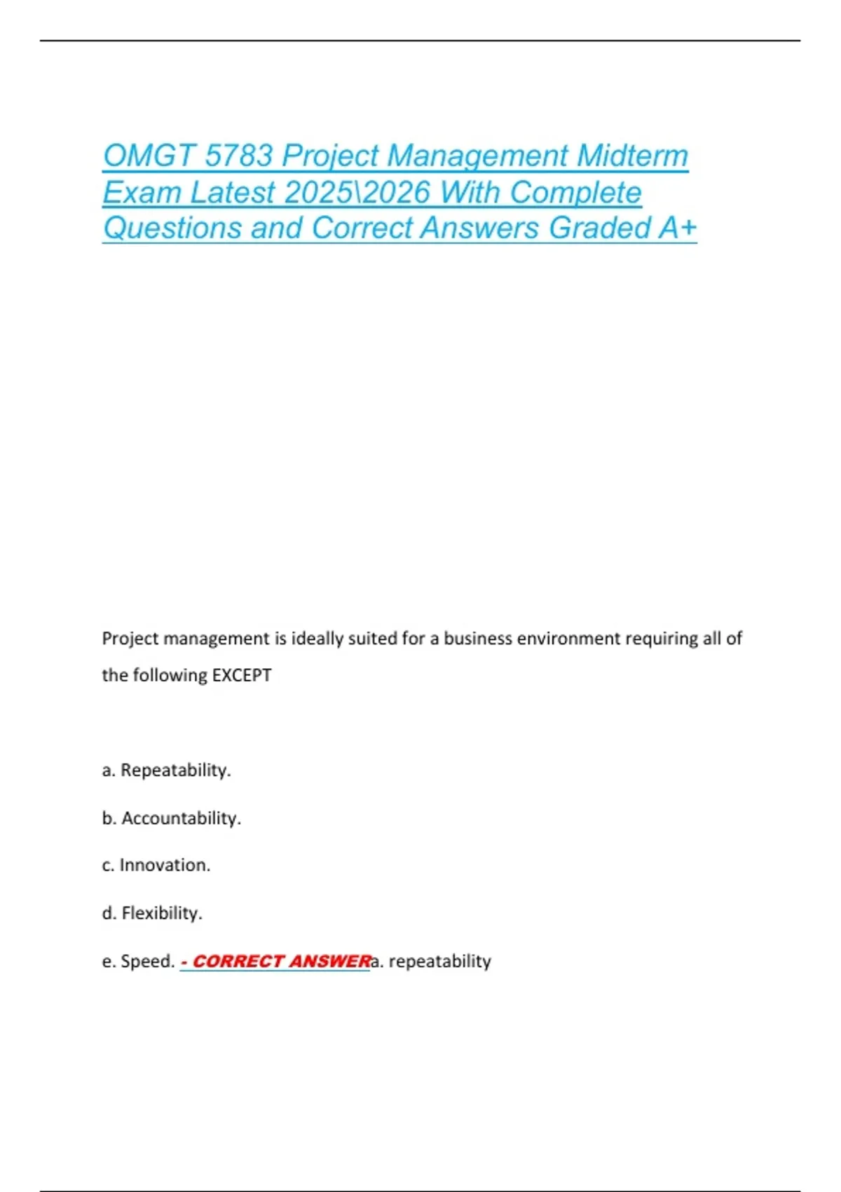 e. Speed. - CORRECT ANSWERa. repeatability