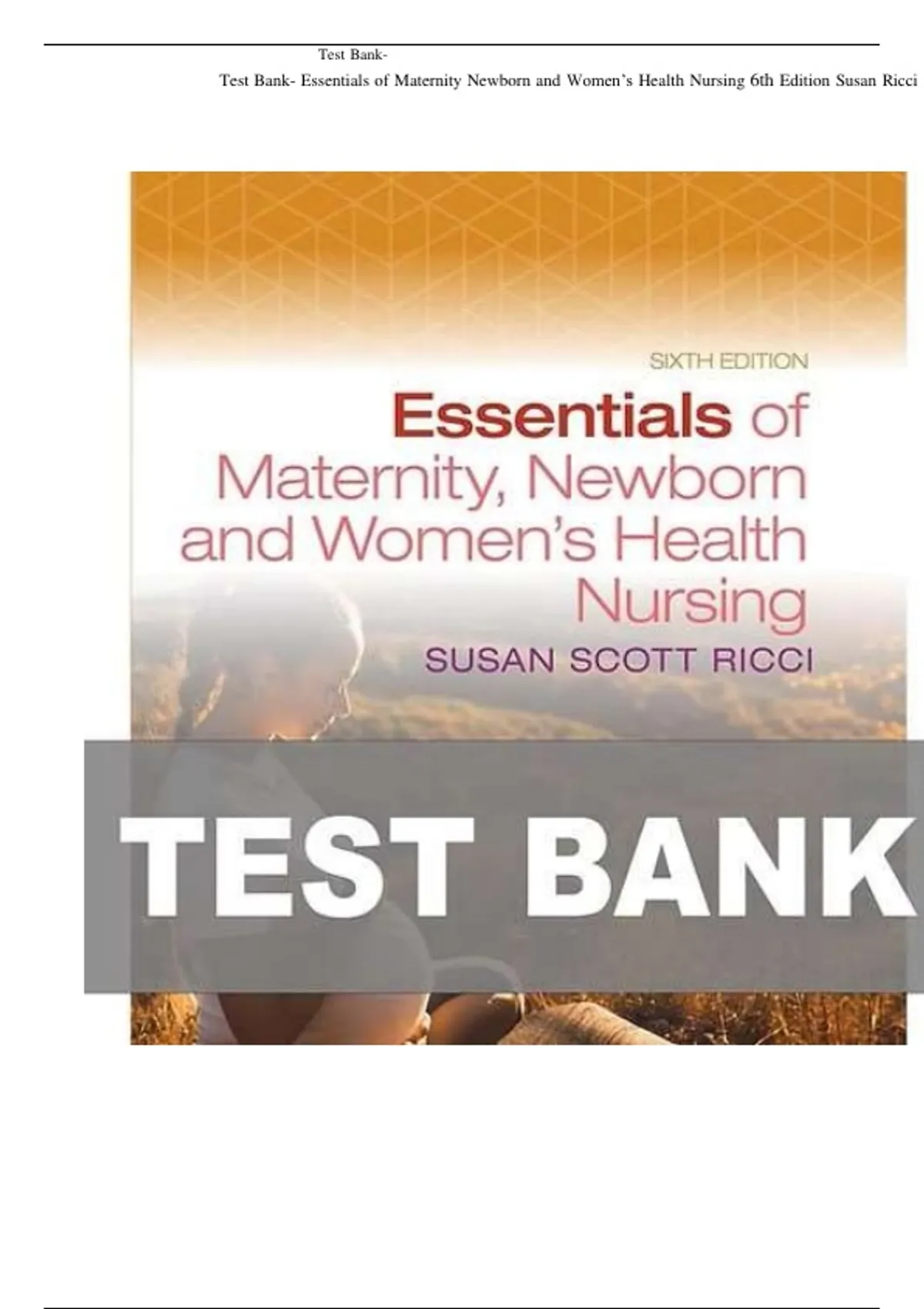 Test Bank: Essentials of Maternity, Newborn, and Women’s Health, 6th Edition by Susan Ricci - All Chapters and Rationals Included