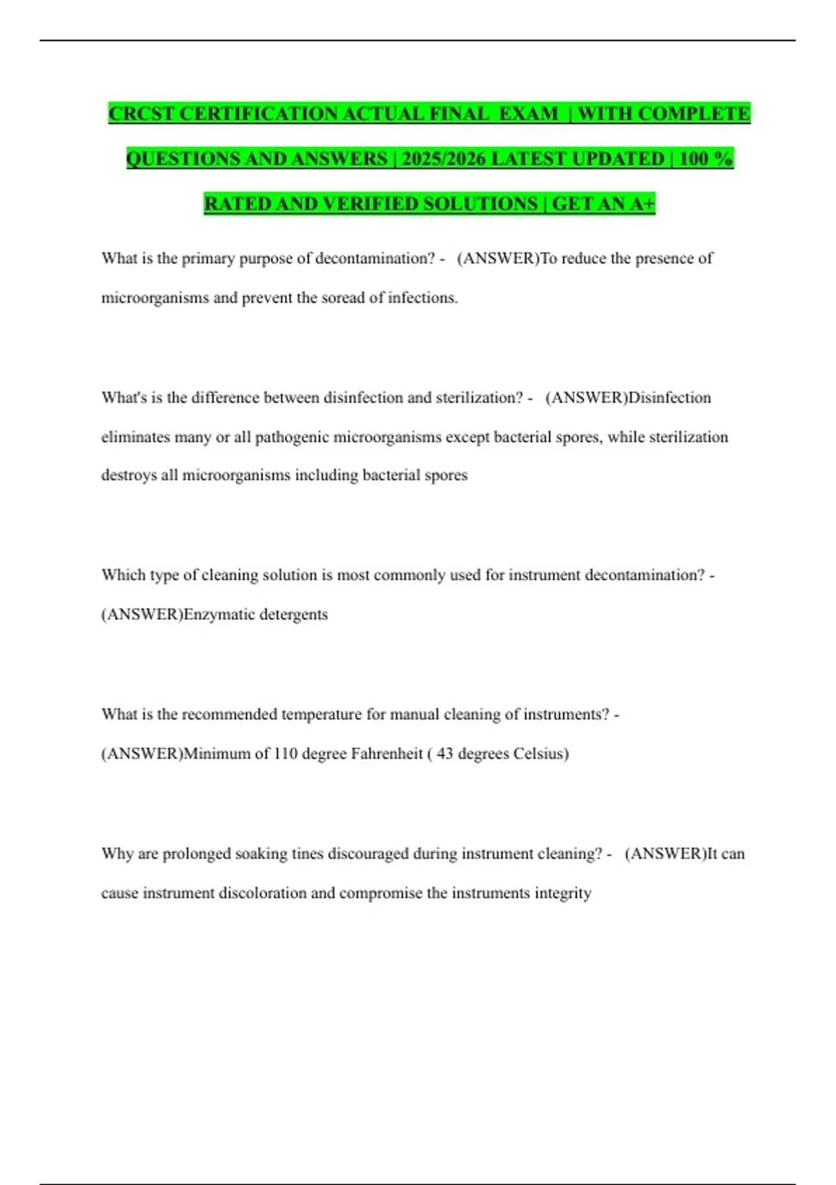 QUESTIONS AND ANSWERS | 2025/2026 LATEST UPDATED | 100 %