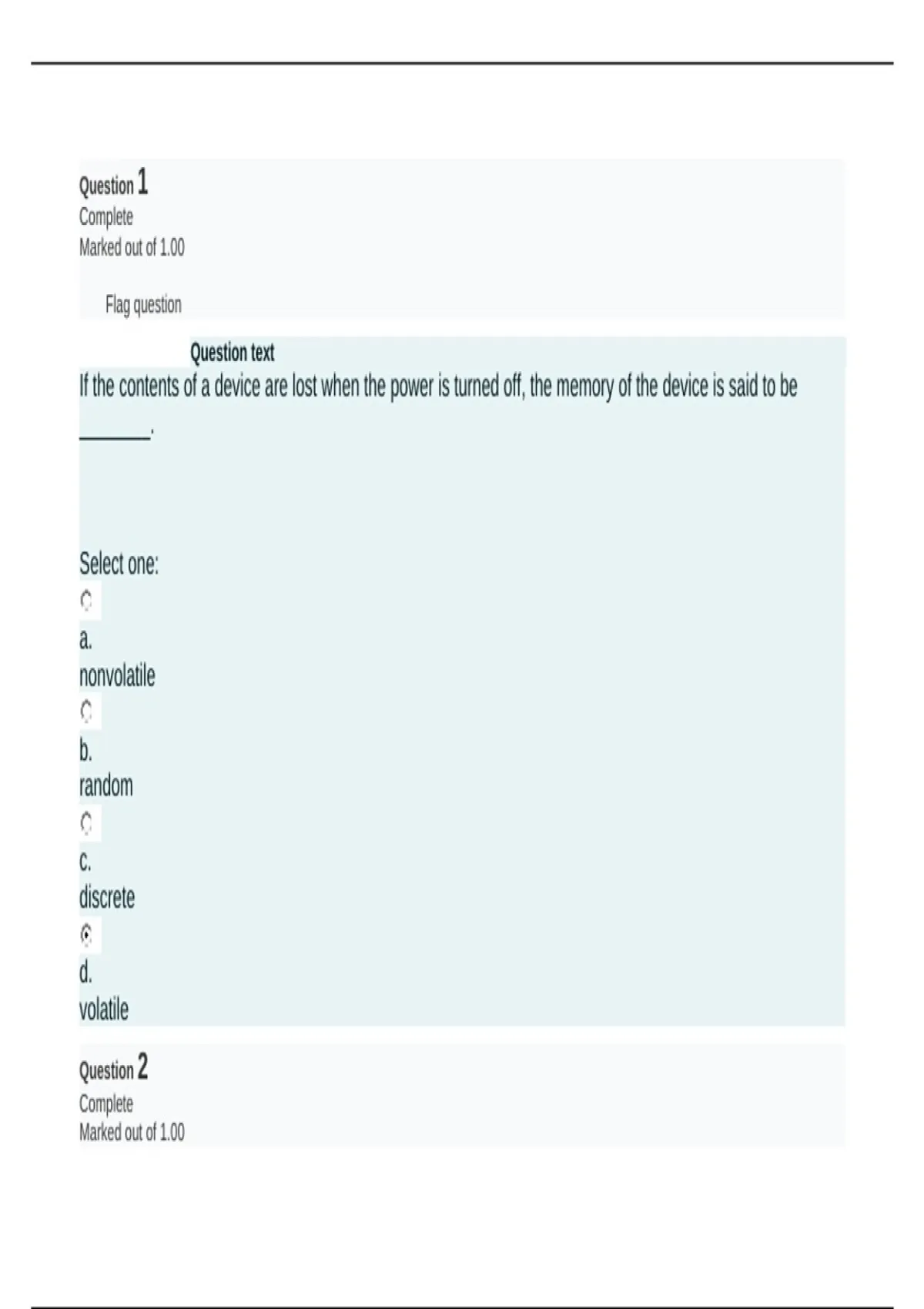 If the contents of a device are lost when the power is turned off, the memory of the device is said to be