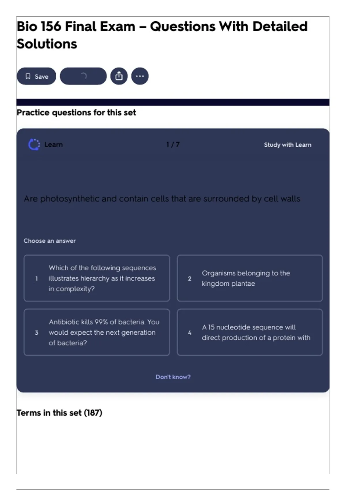 Bio 156 Final Exam – Questions With Detailed Solutions