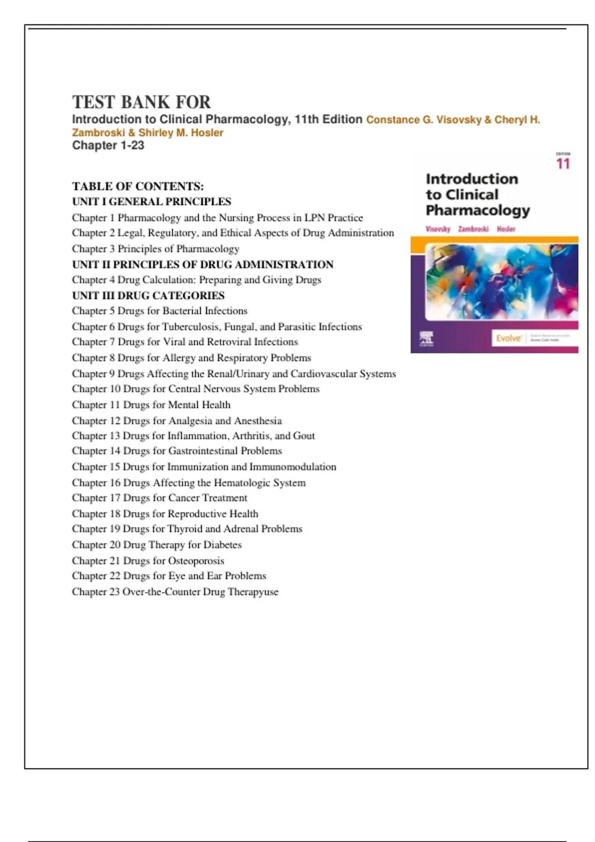 1+_@@_+#)*$&%*&()#$ INTRODUCTION TO CLINICAL PHARMACOLOGY, 11TH EDITION CONSTANCE G. VISOVSKY & CHERYL H. ZAMBROSKI@!)(#09)#)#09320-23@$@@#2