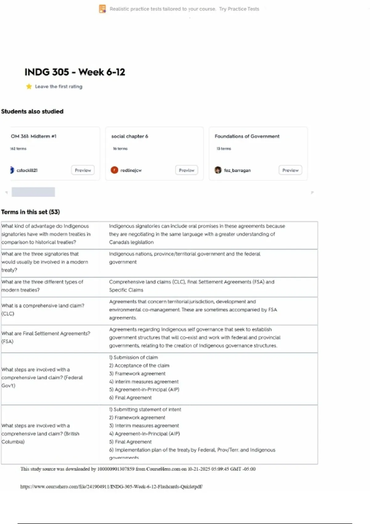 INDG 305 - Week 6-12 Flashcards., Realistic Practice Tests tailored to your Course. 100%v Correct Verified Answers