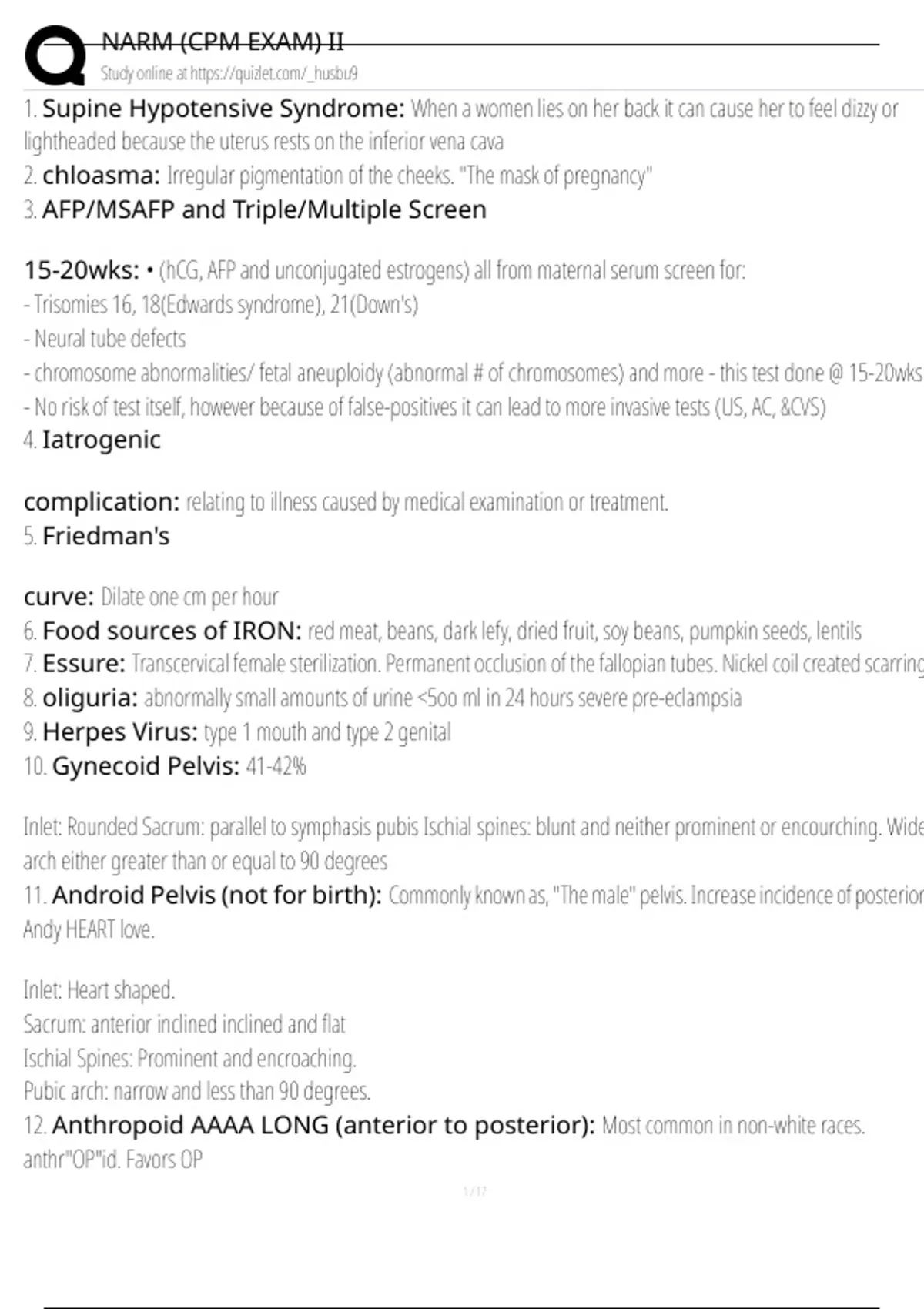 11. Android Pelvis (not for birth): Commonly known as, "The male" pelvis. Increase incidence of posterior.