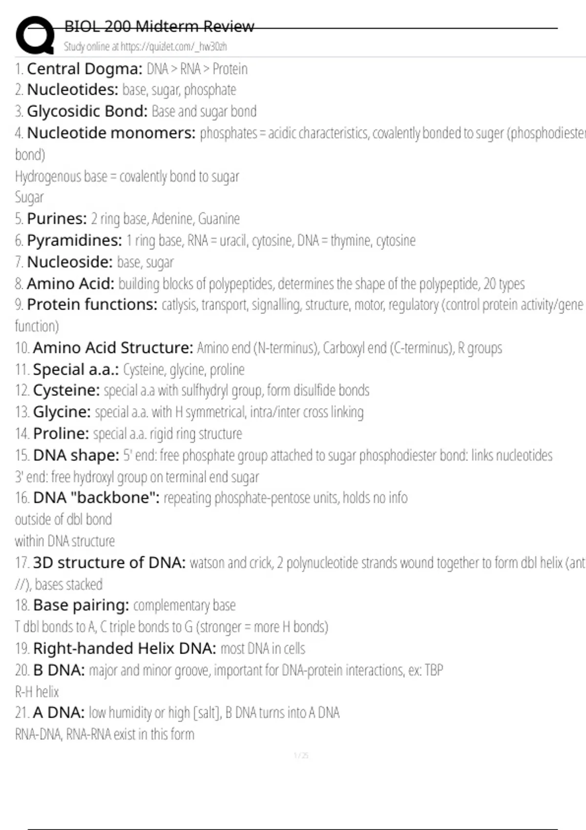 21. A DNA: low humidity or high [salt], B DNA turns into A DNA