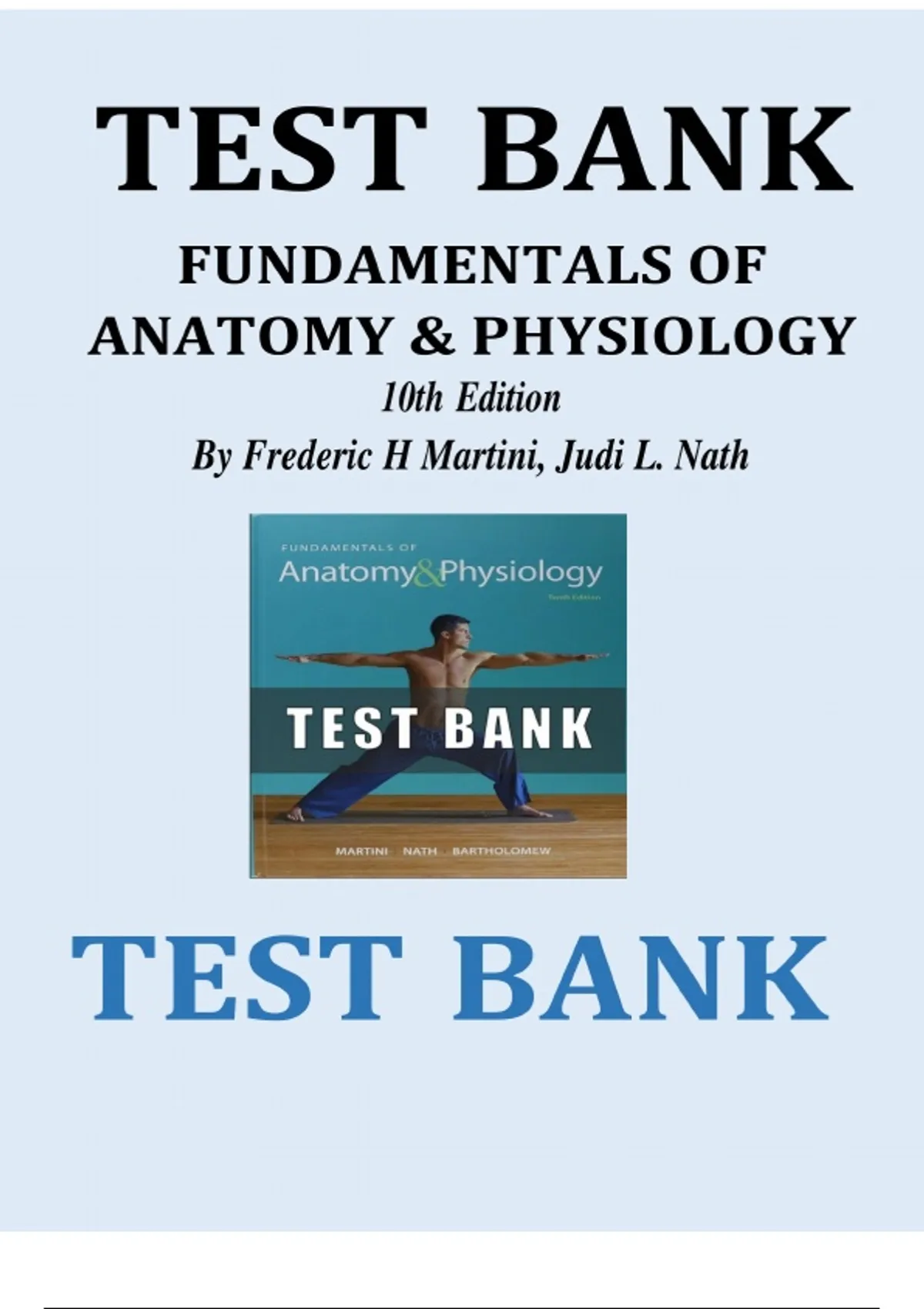 Access the complete Test Bank for Fundamentals of Anatomy and Physiology, 10th Edition by Frederic H. Martini. Includes detailed chapter-by-chapter multiple-choice, true/false, and short-answer questions with verified answers—ideal for nursing, health science, and pre-med students preparing for exams and quizzes.