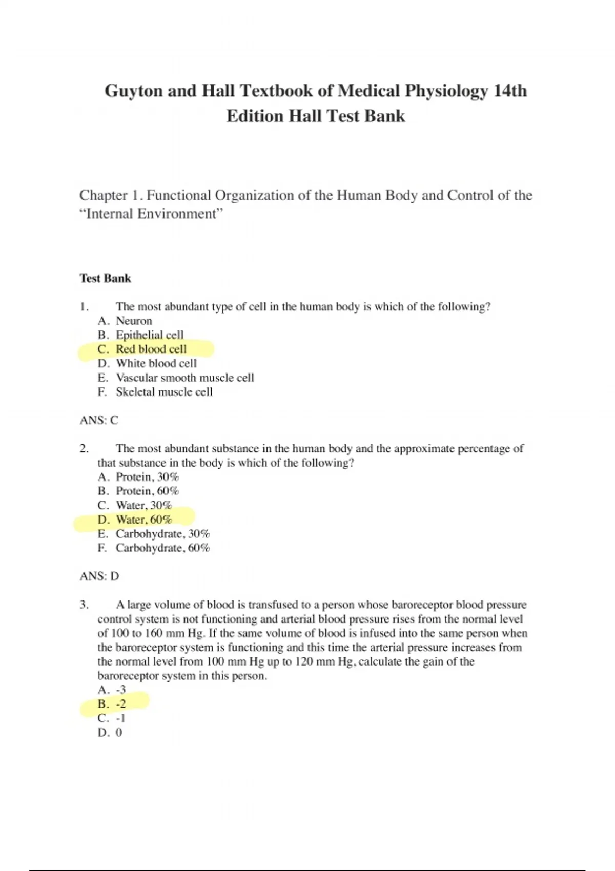 the complete Test Bank for Guyton and Hall Textbook of Medical Physiology, 14th Edition by Hall. Includes detailed chapter-by-chapter multiple-choice, true/false, and short-answer questions with verified answers—ideal for medical, nursing, and health science students preparing for exams and quizzes.