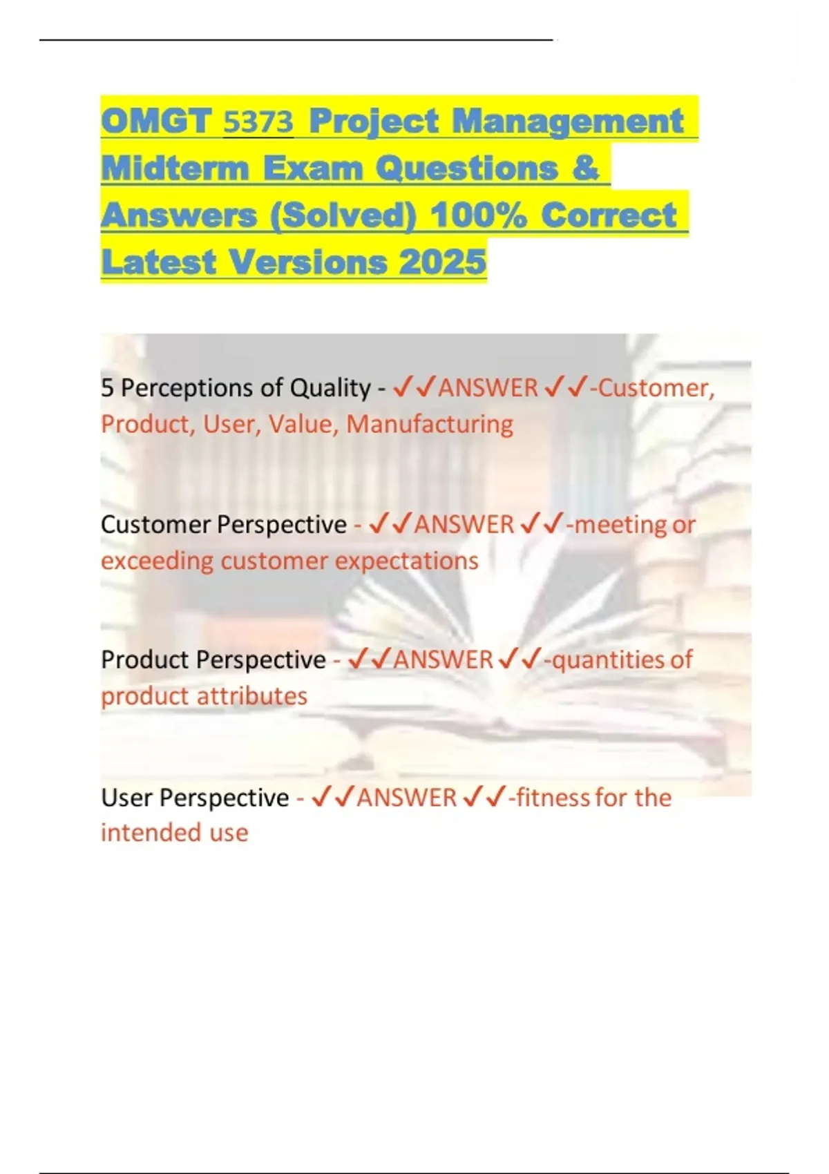 5 Perceptions of Quality - ✔✔ANSWER ✔✔-Customer,