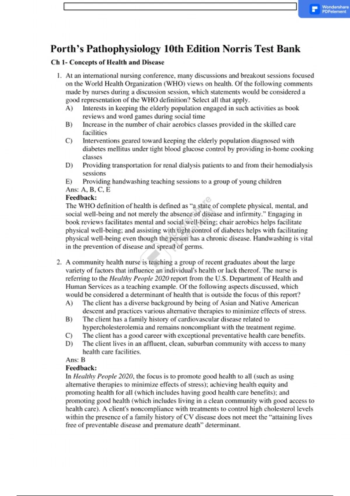 Access the complete Test Bank for Porth’s Pathophysiology, 10th Edition by Norris. Includes detailed chapter-by-chapter multiple-choice, true/false, and short-answer questions with verified answers—ideal for nursing, medical, and health science students preparing for exams and quizzes
