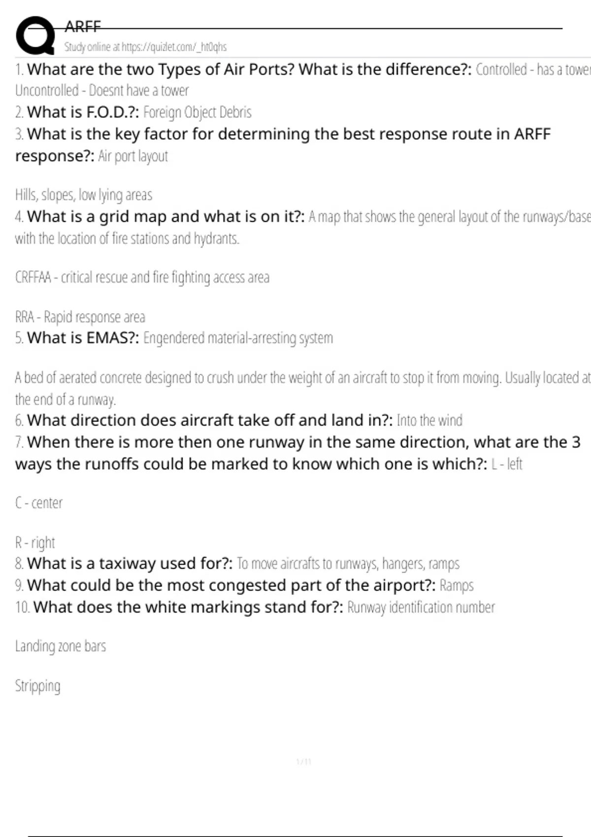 8. What is a taxiway used for?: To move aircrafts to runways, hangers, ramps