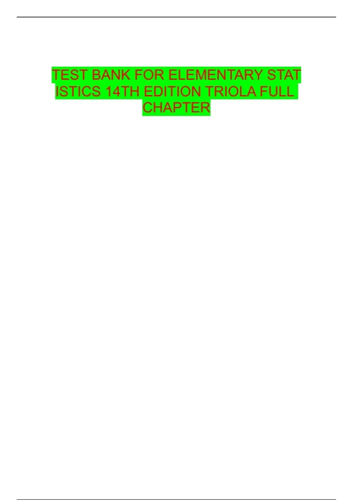 TEST BANK FOR ELEMENTARY STATISTICS 14TH EDITION TRIOLA FULL CHAPTER