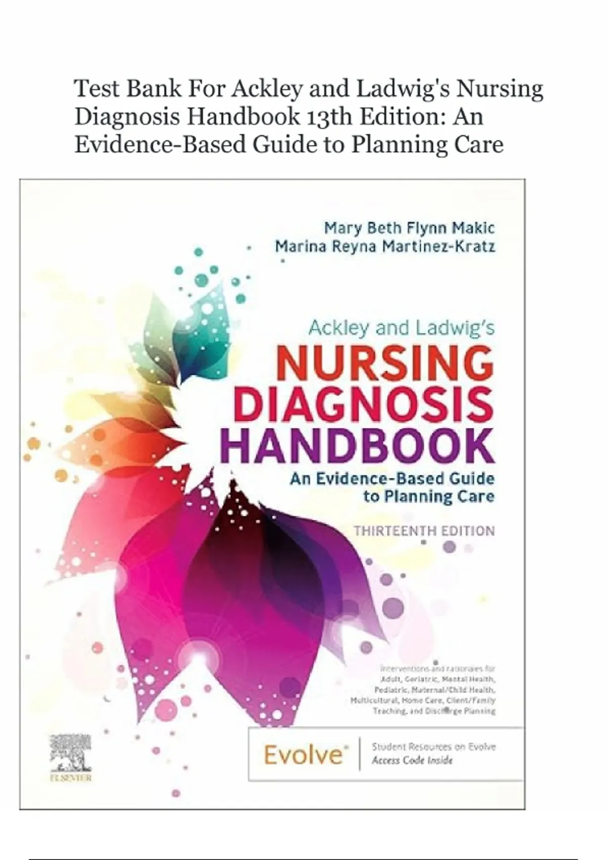 Test Bank for Ackley and Ladwig’s Nursing Diagnosis Handbook: An Evidence-Based Guide to Planning Care 13th Edition by Mary Beth Flynn Makic.|All chapters, Graded A+.