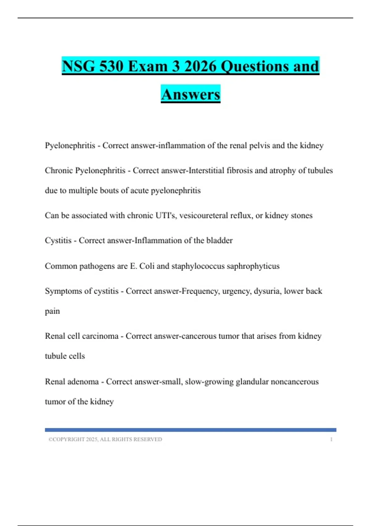 Pyelonephritis - Correct answer-inflammation of the renal pelvis and the kidney