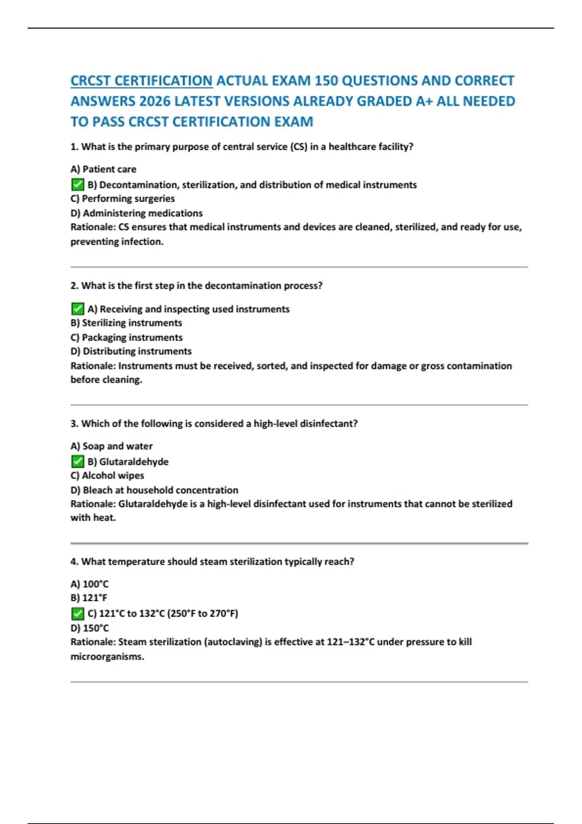 Rationale: CS ensures that medical instruments and devices are cleaned, sterilized, and ready for use,