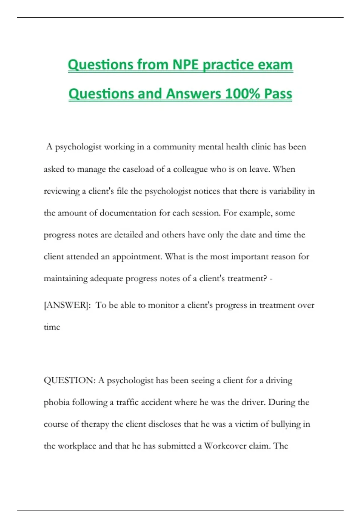 Questions from NPE practice exam Questions and Answers 100% Pass