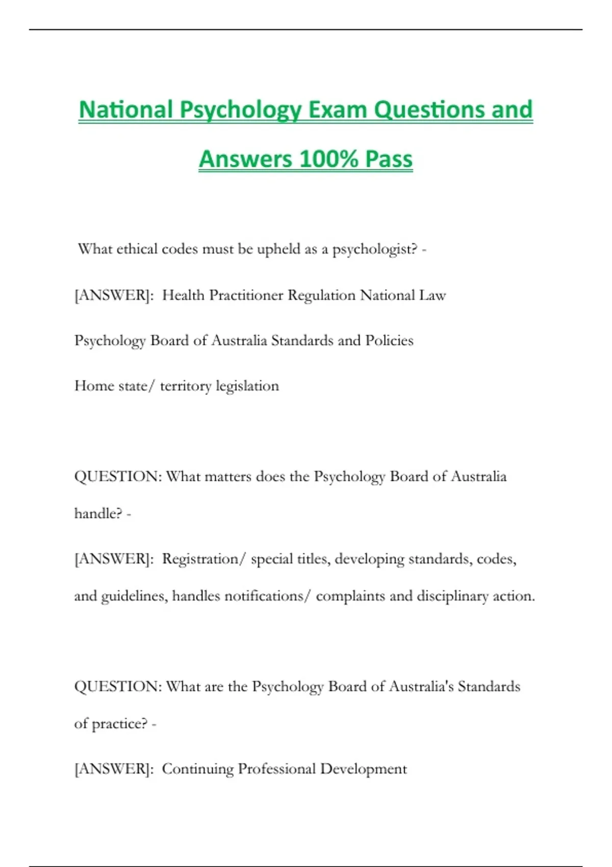 National Psychology Exam Questions and Answers 100% Pass