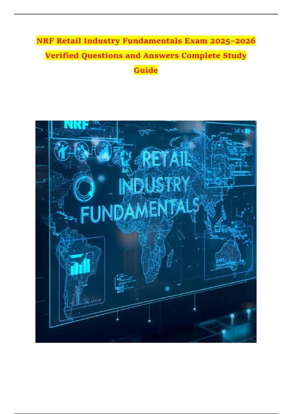 NRF Retail Industry Fundamentals Exam 2025–2026 Verified Questions and Answers Complete Study Guide Introduction: This comprehensive guide covers verified questions and correct answers for the 2025–2026 NRF Retail Industry Fundamentals Exam. It includes all major topics such as customer service, sales techniques, retail operations, inventory management, merchandising, and workplace safety. The document also addresses essential retail concepts like supply chain, omnichannel retailing, product knowledge, loyalty programs, and digital transformation in retail. Perfect for students and professionals preparing for NRF certification or reviewing key retail fundamentals. Exam Questions and Answers Which of the following is most likely to be a role in a retail career --- correct precise answer ---buyer When distribution team members use replenishment reports to retrieve quantities of items to be sent to stores they are: --- correct precise answer ---picking ** Marketing programs that track purchase history, personal information and preferences and provide incentives to loyal, repeat customers are called: --- correct precise answer ---loyalty programs