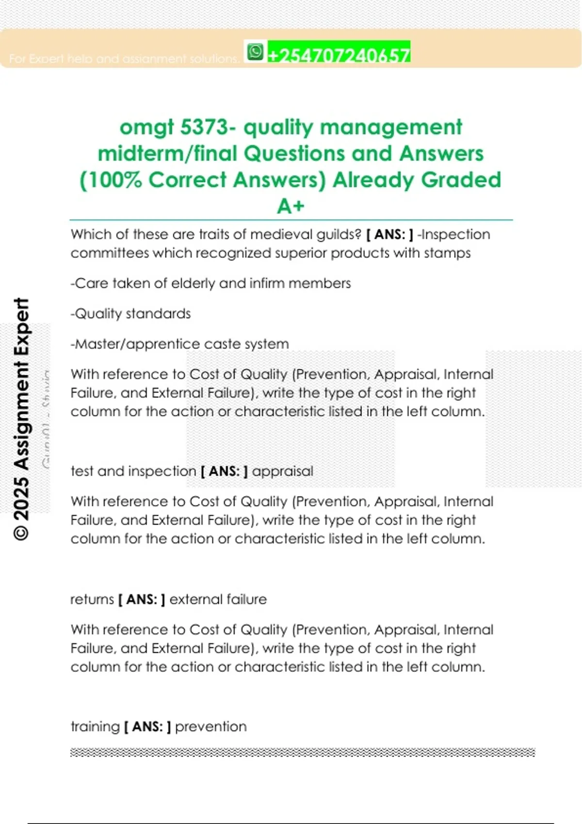 With reference to Cost of Quality (Prevention, Appraisal, Internal