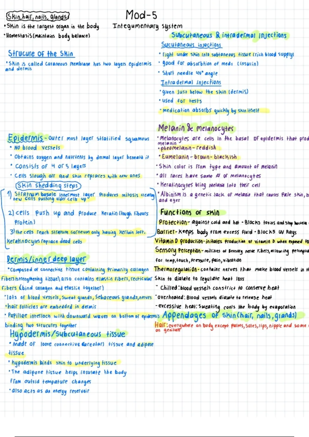 Beautiful, clean, and color-organized notes covering the entire Integumentary system module! Perfect for students in Nursing, Health Sciences, and Anatomy & Physiology courses.