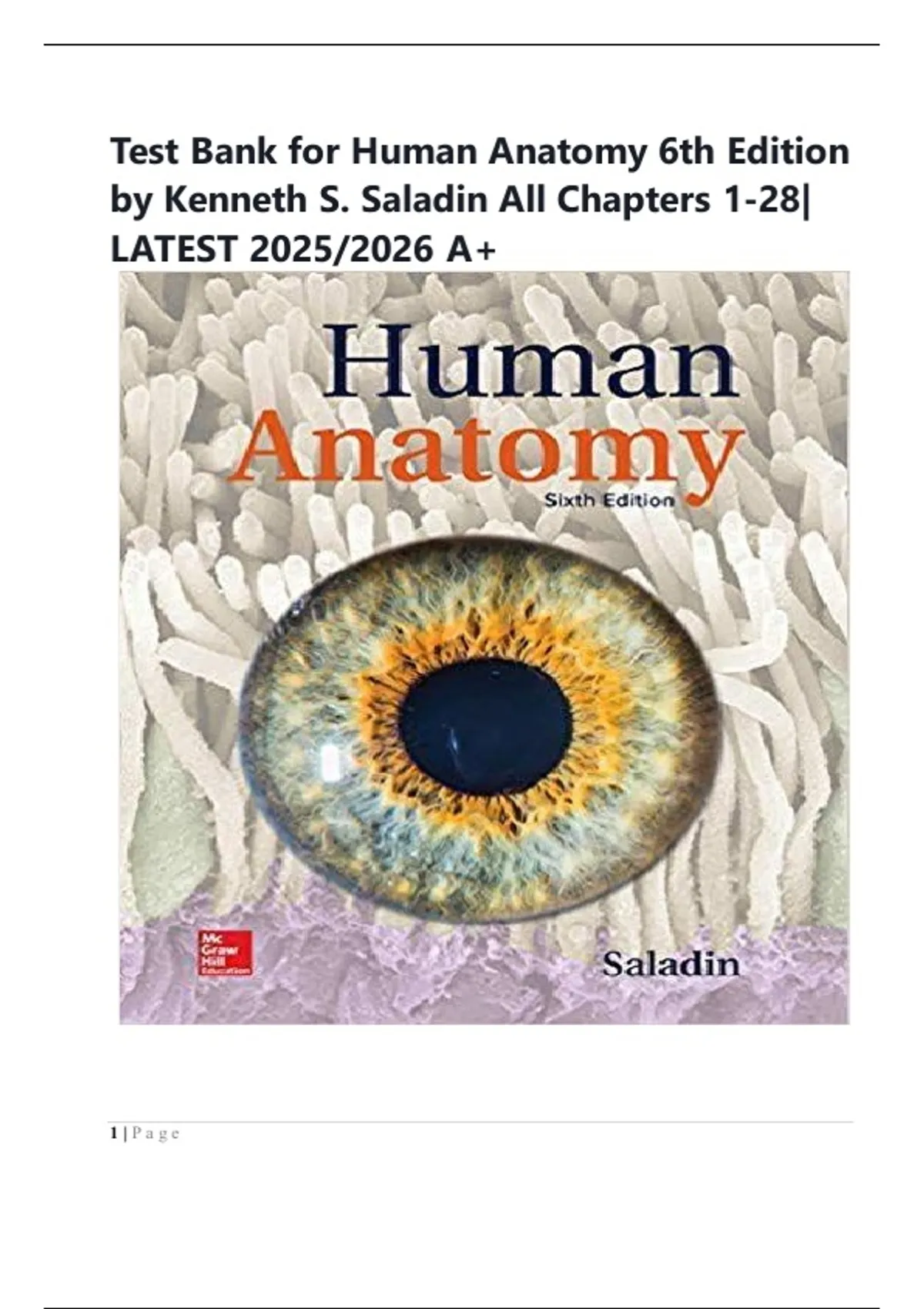 Test Bank for Human Anatomy 6th Edition by Kenneth S. Saladin| 9781260399721| All Chapters 1-28| LATEST